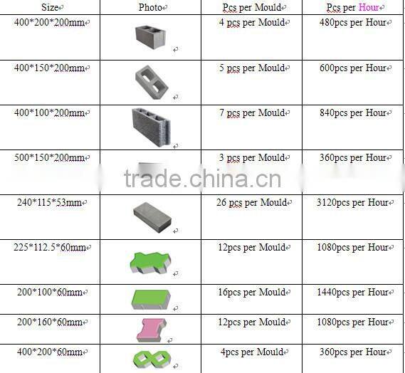 III. Capacity for Sizes of Blocks and Pavers for shengya diesel hydraulic interlock block machine in saudi arabia for hollow block, solid brick, paver and kerb in machinery