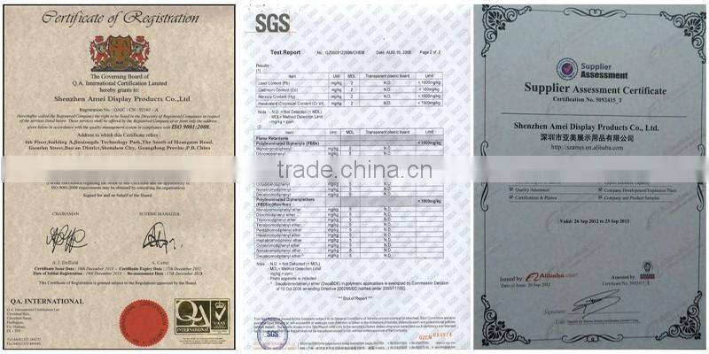 Acrylic product features | 1)Elegant Design 2)With Certificate for acrylic materials 3)High transparency, being 92%,like crystal, "queen of Plastics" 4)High hardness and luster of surface 5)Good process ability 6)Excellent weather resistance 7)Excellent overall performance 8)Nontoxic |