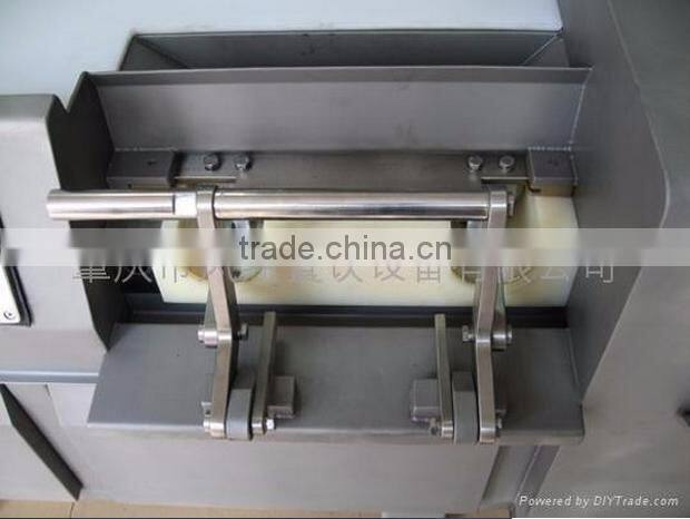 4.By adjusting the meat material pushing rod into step-by-step movement. It is possible in adopting single blade cutting to reduce the squeezing on the products to maximum limit in the cutting course.