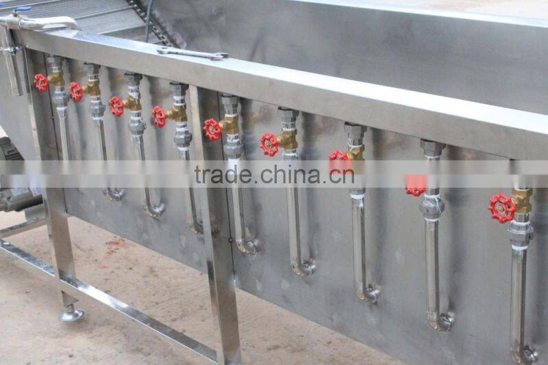 * The Blanching machine is a steam heating drift hot machine, the steam box installs with automatic temperature control electromagnetic valve device, manual steam input device and temperature control detector, which can be adjusted automatically to keep a suitable temperature.