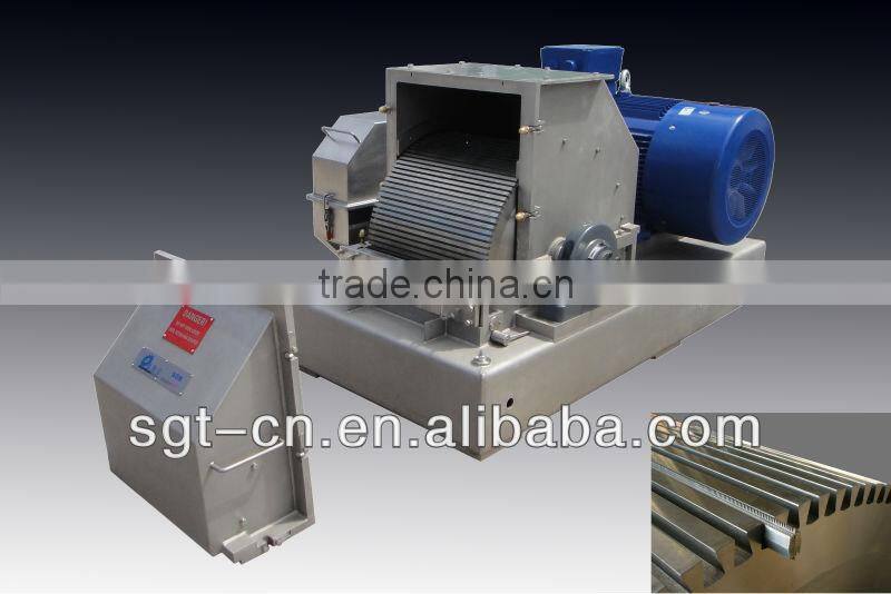 The rasper is comprised of frame, shell, rotor, major axis, feed inlet, reversible files, bearing, bearing seat, block, sieve plate, electric motor,V type belt roller and protection cover.