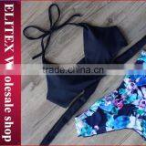 2017 Newest Black Grounding Floral Print Latest Design Sexy Women Bikini Swimwear BI210