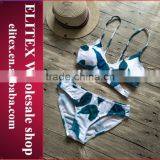 2017 Newest White and Green Leaf Sexy Print Bikini Swimwear BI218