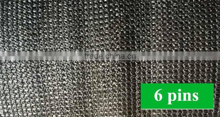 6 pins shading net: shading rate atout 95%. The more commonly used in the shed, roof heat insulation and cooling, for places with higher requirements for shading effect.