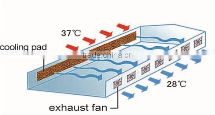The main equipment of cooling system is wet curtain and negative pressure fan , using the principle of negative pressure pumping and water evaporative cooling.