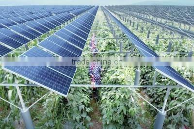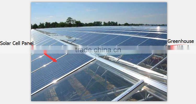 4)Photovoltaic greenhouse has a reduction of pests and diseases, anti hail, radiation, rain, strong winds and other bad weather, no pollution, etc