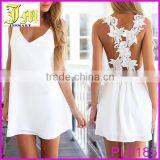 2016 Sexy Women Casual Sleeveless Beach Short Dress Solid White Evening Party Cocktail Mini Lace Dress