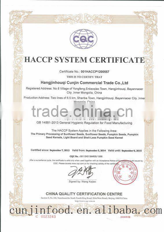 Shine Skin Pumkin Seeds Kernels Grade A From Inner Mongolia