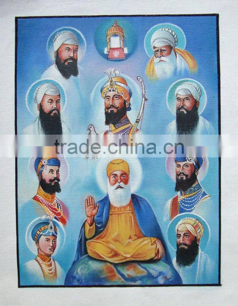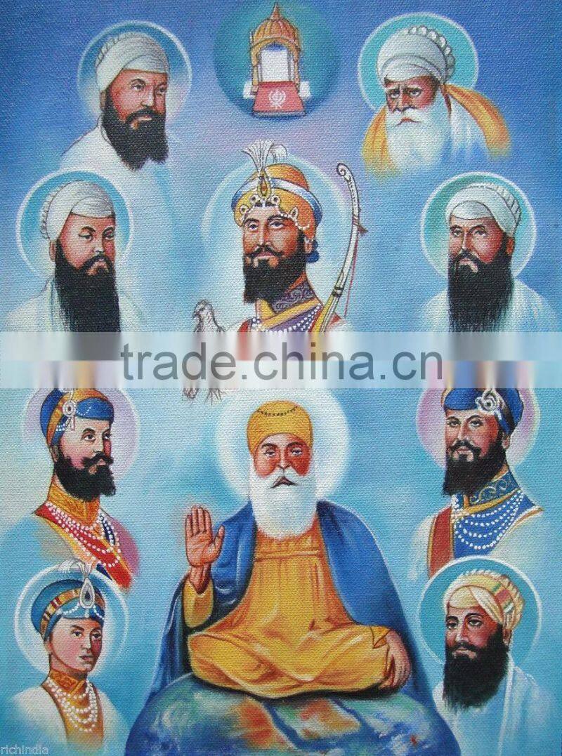 Sikh Guru Nanak Art Rare Sikhism Ten Gurus Canvas Oil Painting