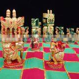 Hand Crafted Hand Painted Artisan India Art & Craft Fine Carvin Wooden Chess Set