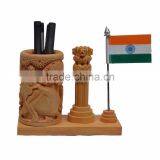 Jaipur Rajasthan Ashok Sthamb Indian Flag Wooden Pen Stand Tableware