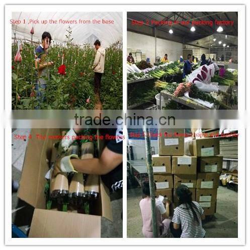 4 .In the evening,the rose flwoers would be packed in the carton carefully.usually the carton size si 100*40*40 cm ,and one carton will included 500 -600 pieces rose flowers .we put 4 ice bags per carton to ensure the tempreture not rasising in the transportation .
