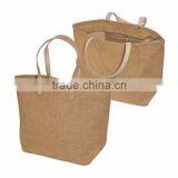 Eco-friendly Reusable Bag Women Shopping Bag Jute Burlap Tote bag with Cotton webbed handles all natural in color size 16"W x 17"H x 8"Gusset Inside laminated