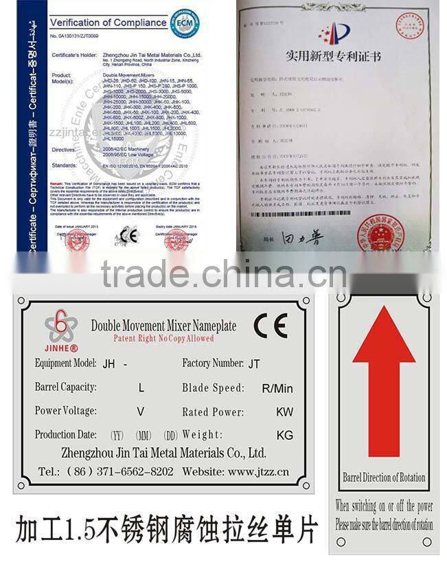 Double movement means there are two running system,one is inside blade and one is outside container.The inside blade is two time faster than the outside container.That's why our machine can get high efficiency and ideal effect. Double movement mixer is our unique and patented product.Also the most advanced mixer in China.