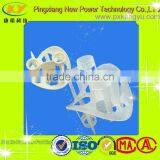 Plastic random packing is made from heat resistant and chemical corrosion resistant plastics, including polyethylene (PE), polypropylene (PP), reinforced polypropylene (RPP), polyvinyl chloride (PVC), chloridized polyvinyl chloride (CPVC) and polyvinylidene fluoride (PVDF). It has features such as high free volume, low pressure drop, low mass-transfer unit height, high flooding point, uniform gas-liquid contact, small specific gravity, high mass transfer efficiency and so on, and the application temperature in media ranges from 60to 150. For these reasons it is widely used in the packing towers in petroleum industry, chemical industry, alkali-Chloride industry, coal gas industry and environmental protection, etc..