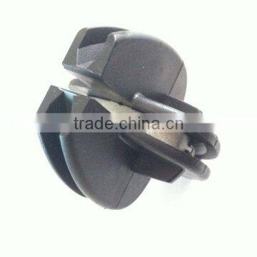 Double-U Insulators are used on end and corner posts. The electrified wires go on the inside of the corner posts. It is used like a porcelain donut where a loop of non-electrified wire holds the insulator to the post. However, they are much stronger than the porcelain donut. They work best when crimping sleeves are installed in the wire loop to bring the wire together near the insulators. The I46 has metal embedded in the plastic to keep the wire from cutting through .