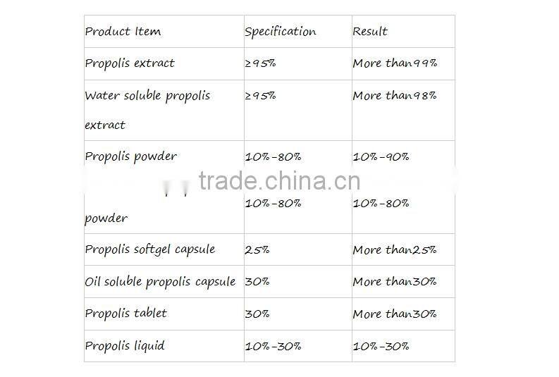 Propolis contains more than 20 categories, more than 300 kinds of natural ingredients, the main effect of propolis extract are flavonoids, terpenoids and other natural compounds.