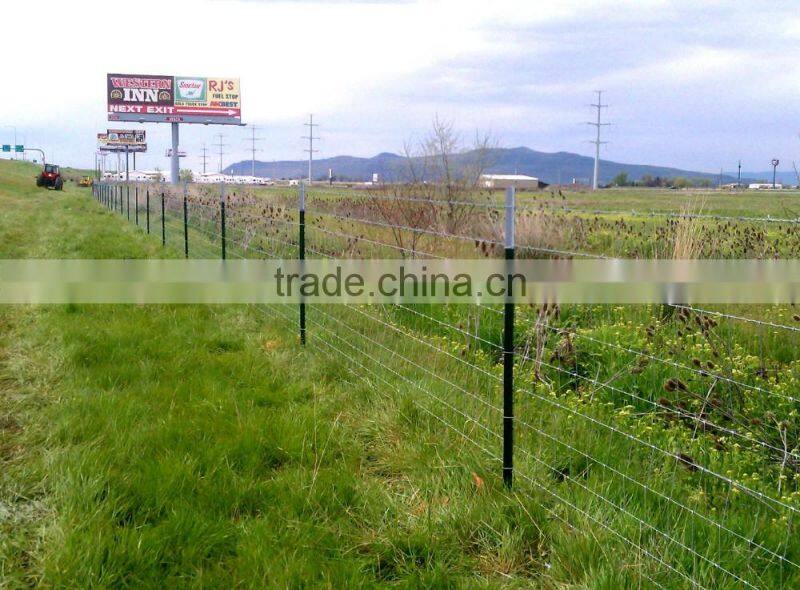 The field fence usually installed with wooden post or Y star picket/Y post. Y star picket/Y post is cheap and convenient to install, it is a good choice.