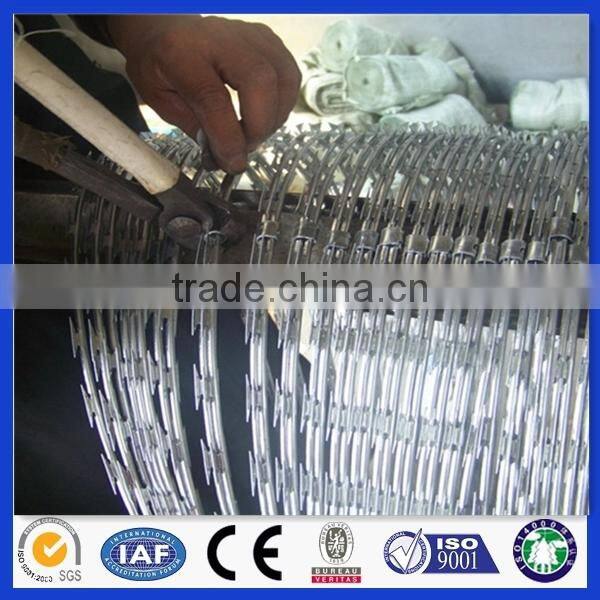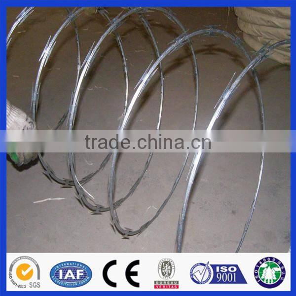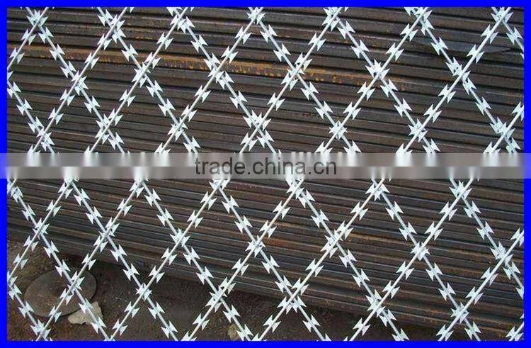 The blade barbed wire, also known as the blade stinging, razor wire, is a new type of fence.Blade thorn rope with beautiful, economical and practical, prevention effect is good, convenient construction and other excellent characteristics, at present, the blade barbed wire has been widely used in industrial and mining enterprises in many countries, garden apartment, border posts, military field, prisons, detention center, government buildings and other national security facilities.
