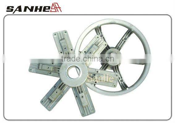 ![]() | Fan belt pulley is made of high strength aluminum-magnesium alloy by die-casting which reduces the weight of blade impeller complete, high corrosion resistance. Special three reinforced ribs pulley design. Blast-sanding treatment for attractive appearance, eliminate internal stress to improve its own rigidity and stability, never broken. |