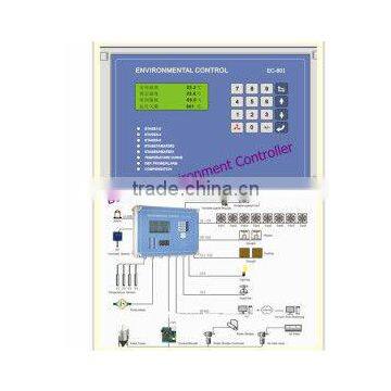 Environment controller is mainly used to control ventilation of enclosed poultry house. According to signals sent by temperature and humidity sensor, it can control the temperature and humidity of poultry house on a given curve to meet poultry demonds by controlling fans, heaters and cooling pads.