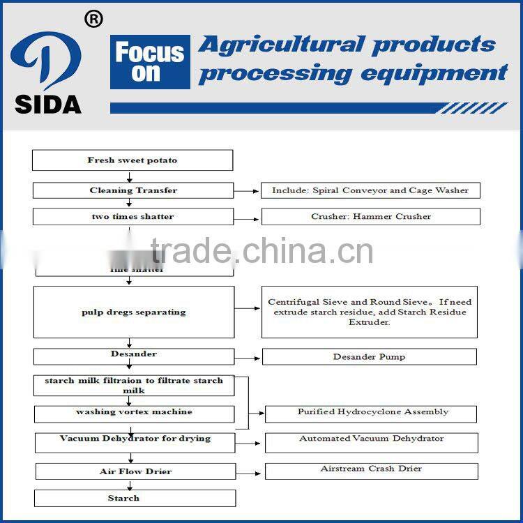 The process flow block diagram for sweet potato starch machine