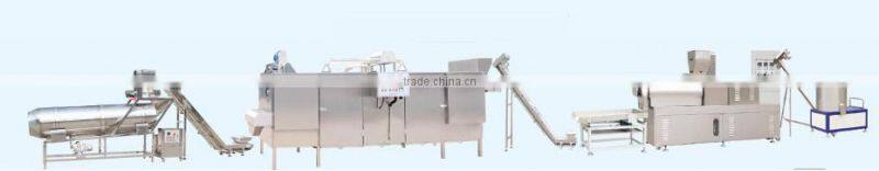 4.It adopts speed-adjusted converter on feeding system, extrusion system and cutting system. Food grade st ainless steel twin screw feeding device guarantees stable materials feeding in the whole food process.