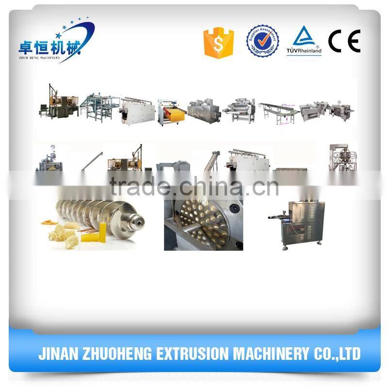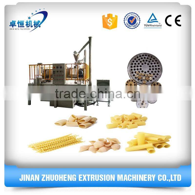 CE Macaroni Pasta Production Line/processing line is new designed production line which adopts abroad advanced technology also combined with our engineer research. It always take wheat flour, Rice powder as the raw materials, through the Single screw Extruder, high temperature heating finally through the Mould to form different Pasta shapes. The shape is like Ring,Roud tube,Square tube,Sprial,Shell,3S and so on according to change the Mould on the Extruder head. The pasta quality can compare with Europe standard.