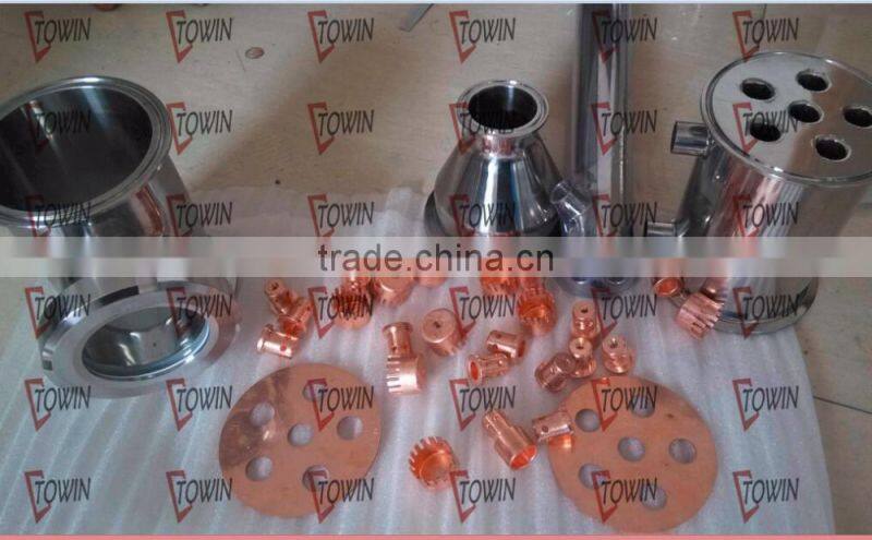 We supply various types and sizes COMPONENTS for distilling equipment,such as complete-Flute Column,complete milk can distiller,milk can boilers,copper bubble plates(caps and plates),condensers,heating elements,drain valve,Ferrules,tri-clamps,condensers,reducers,stainless steel tee,sight glass etc.