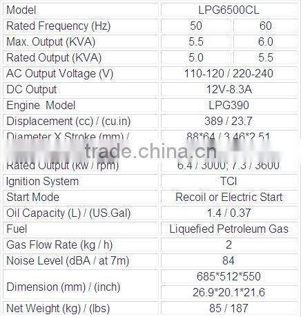 New type 6.0kw Liquefied Petrol Gas Generators (LPG) LPG6500CL by Launtop for sale
