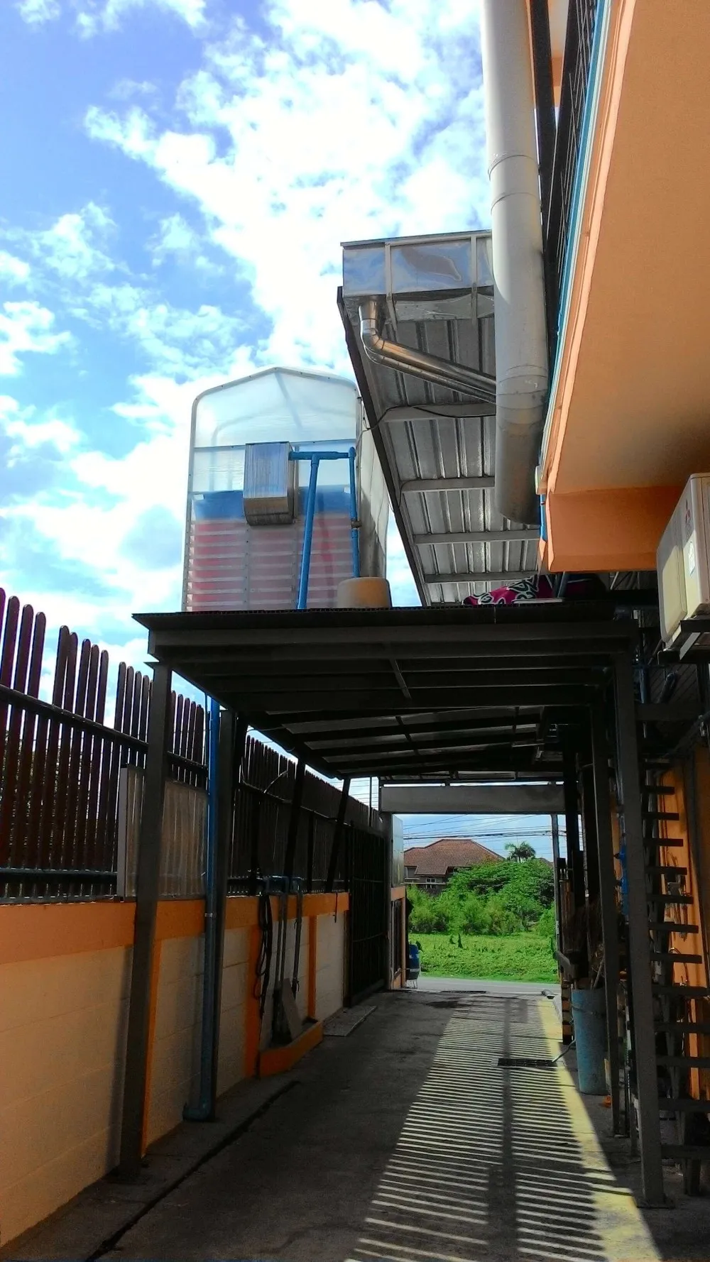 This mini biogas plant is composed of a greenhouse made with sunlight sheet and metal