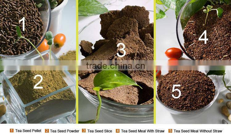 With different manufacture processing method and customer preferences, the tea seed after oil extraction are smashed, milled and granulated into different types: tea seed meal with straw, tea seed meal without straw, tea seed pellet, tea seed powder, tea seed slice, etc. They are same product but just different in the particle size and appearance to better suit different using purpose.