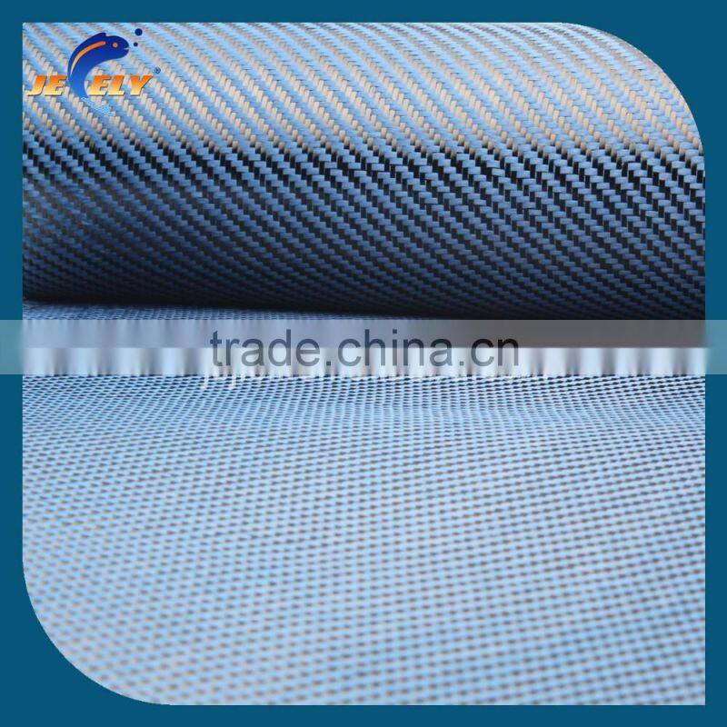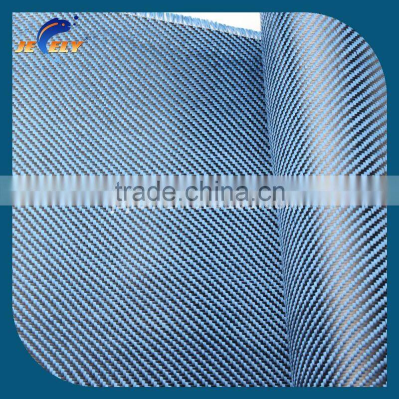 Carbon 3K Aramid 1670D Fiber Twill Weave Fabric 195g/m2 Carbon Blue Aramid Hybrid Cloth