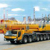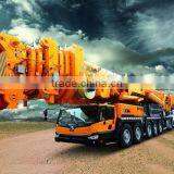 Based on the success of QAY130, QAY160, and QAY200 all terrain truck cranes, QAY 240 is another new all terrain product developed by our company through extensive market research and technical demonstration. It inherits the successful experience, and adopts new materials, new technologies, and the most advanced steed structure design and computer control technique. The main hydraulic parts and load bearing materials adopts international parts and components, effectively improving the product’s performance and reliability. The application of hydropneumatic suspension all terrain chassis, electronic proportional control system, limit load control variable hydraulic system, U jib technique greatly improving the performance and grade of the machine. The machine has modern design, compact and reasonable layout, and excellent travel and lifting performance. QAY240 which represented the highest design level at that time attended the 2007 Munich Bauma Exhibition. It is the first time for the Chinese high-level crane shown on the international stage, extending the domestic crane’s influence in the world.