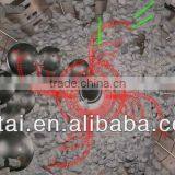 The grinding Process of the Main Mill is that the transmission device brings along the Central Shaft to drive. The upper part of the shaft connects with the Quincunx Rack, on the frame is loaded with the roller assembly, and forms a swinging pivot. The central shaft does revolve around the central rotation, at the same time it revolves around thegrinding rings, and it self also rotates on account of the grinding effect. The shovel system, in the lower part of rollers, is loaded on the lower part of the Quincunx Rack. In the process of rotating of the shovel and the roller, the material will be fed gasket layer between the rollers and ring. The outside centrifugal force (compression force) yielding in this process will process the material into small powder, thus the desired powder is obtained.