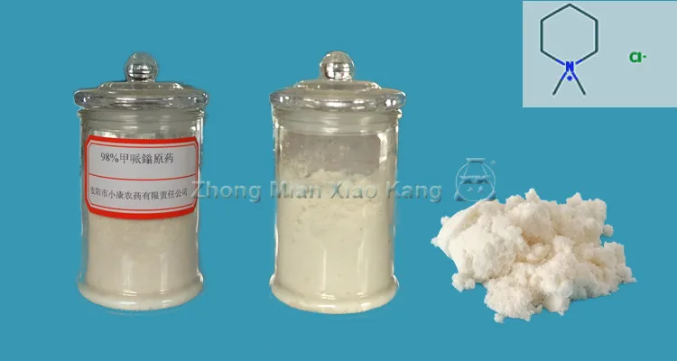 Mapequat chloride (CAS 24307-26-4) is a kind chemical of plant growth regulator , fertilizer. It mostly restrain the biosynthesis of gibberellic acid inside crops when being absorbed by leaves and roots. In this way it can restrain the elongation of cell, stay the growth of nutrition; Make plants shorter and increase content of chlorophyll. This also increases assimilation of leaves and adjusts distribution of outcome inside plants.