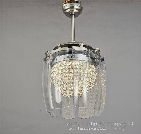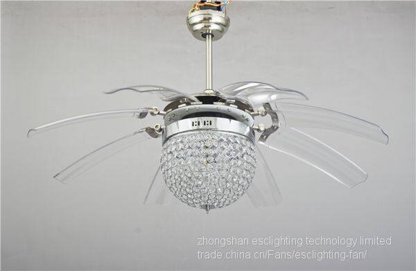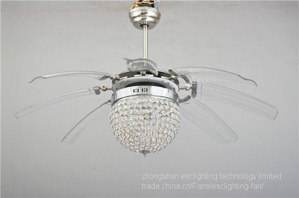110-240v 70w AC DC motor 42'' crystal retractable ceiling fan with lights