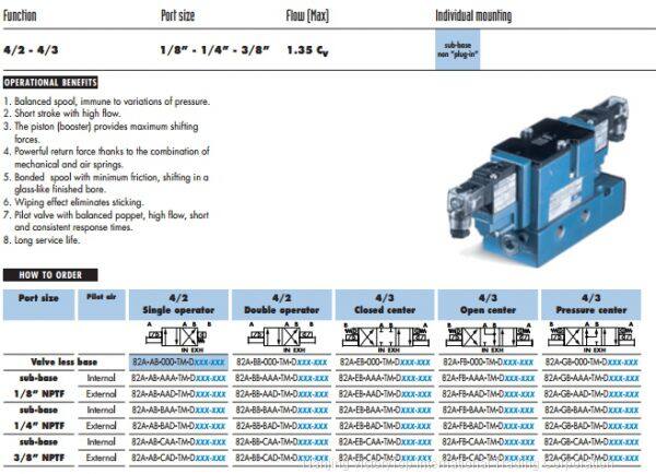 | Model Number | MAC 82 Series 4-way valves | Material | Stainless Steel | |
