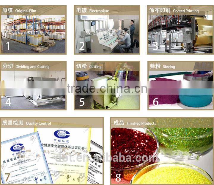 shinning, sparkling, and more attractive! It is widely used for art and crafts, textile printing, synthetic leather, shoes, Christmas gift, plastics, stationary, cosmetics, printing ink, painting, wallpaper, glasswork, etc.