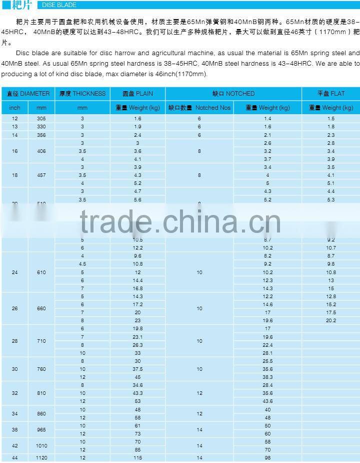 2.Our disc blades have been exported to many countries and regions such as Russia, Africa markets, Southeast Asian market, Latin America and so forth;
