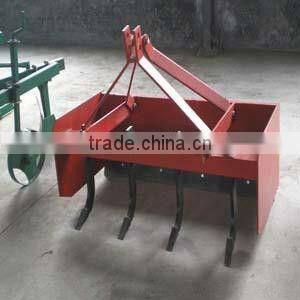 Box scraper fitted between front and back rear wheels to unknit land ,can lift ,slop ,revolve and extend ,flexible and accurate ,easy to usse