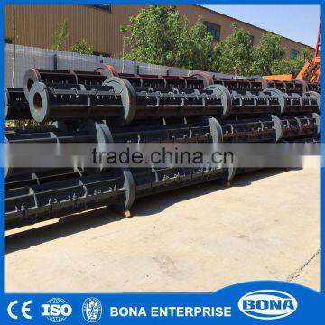 Telegraph pole mold is one of the important pole production equipment. It is not only the shape of the mold but also the pre-stressing device. It is original in structure. Its position fixing is made by radial tongue-and-groove and axial taper pin. Manufactured stage by stage and binded by bolts at last, Top quality cement pole making machinery is characteristic with the advantages of easy transportation, quick assembling, correct position fixing, good rigidity and smooth working.