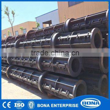 Telegraph pole mold is one of the important pole production equipment. It is not only the shape of the mold but also the pre-stressing device. It is original in structure. Its position fixing is made by radial tongue-and-groove and axial taper pin. Manufactured stage by stage and binded by bolts at last, steel pole mold is characteristic with the advantages of easy transportation, quick assembling, correct position fixing, good rigidity and smooth working.