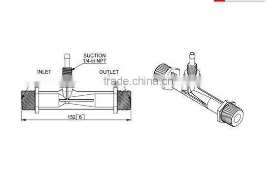 The ozone venturi injector is made of three parts, which is tressurized pipe, the suction chamber, and the nozzle. It is a gas water hybrid approach which use the venturi principle. The ozone venture produce the negative pressure which use the high-speed water flow the throat of the mixing tube, cause the vacuum state of the suction chamber, under the influence of the pressure difference, the input-gas is sucked to the mixing tube. The water is stir strongly, gas is smashed to the small air bubble, turn into Gas-water emulsion of the mist, finally, be erupt through the spread port of the mixing tube, in continued, begain the Vortex stirring in the next tube, make the gas dissolve in the water.