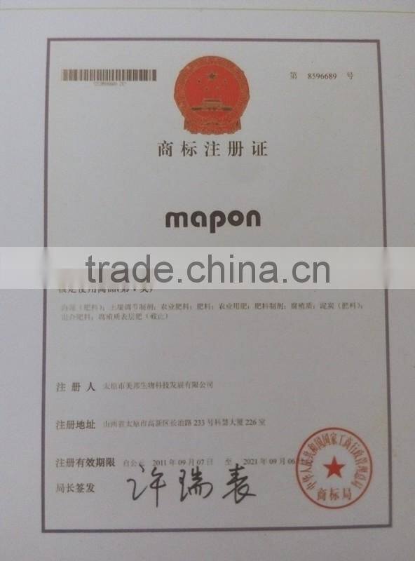 Answer: With more than 14 years of experience in manufacturing and international marketing, we are professional in OEM & Mapon brand orders from overseas markets. Mapon covers an aera of 27000 square meters and has 6 production lines and 3 automatic packing lines to ensure 50,000 tonnages of yearly output. We continue dedicating ourselves in humic acid series products extracted from leonardite since 2002. With the philosophy "make professionally; do the best”, we provide not only high quality humic acid fertilizers, but also crop nutrients solution, and technical consultation etc.