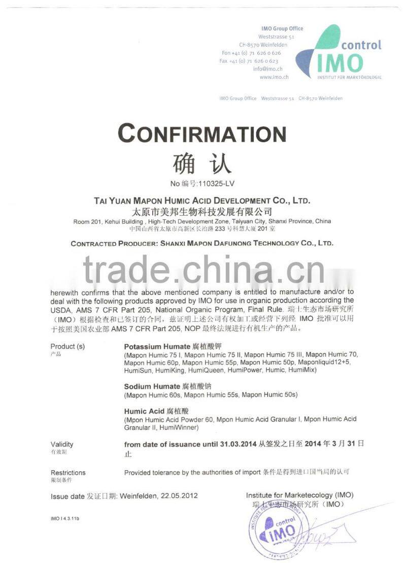 Professional 100% Water Soluble Potassium Humate With CE Certificate