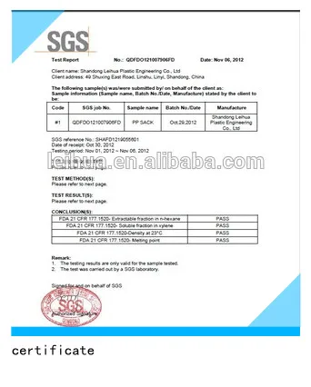 * all pp woven bags are made of virgin polypropylene granules ,