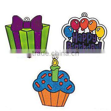 Birthday Suncatchers. Grab your paints and let kids have at these for a delightful birthday party activity! Plastic. (24 pieces per unit) 3 3/4" - 4 1/2" x 4 1/4" - 4 3/4"