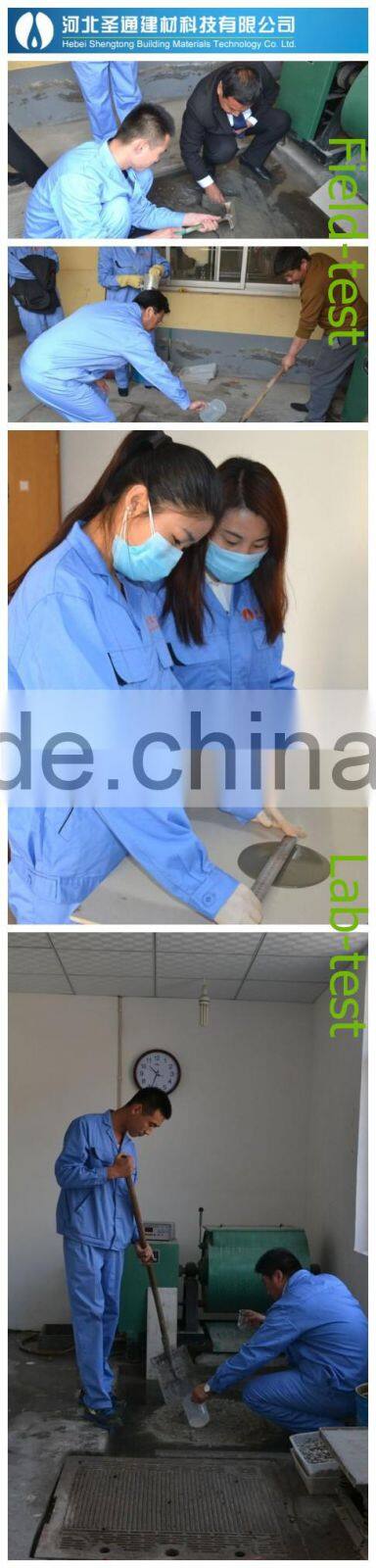 ST-01S liquid accelerator (without alkali) is low dosage, after using it, Cement concrete set and harden fastly, Initial and final setting intervals short. This product can well suit cements. In the range of 3% -7% dosage of cement quantity, it can meet requirements and indicators of JC477-2005< accelerator for sprayed concrete >. Since this product have no alkali, so it can greatly reduce the damage caused by the introduction of basic substances to concrete, such as alkali silica reaction; at the meanwhile, it strictly limit the content of cl-, so that can reduce the rust to steel. It have no dust and reduce the rebound amount in the during the injection process, so that protect the health of builder and reduce the waste of materials; The hardening concrete has good compactness and good permeability, it also can make up high-strength shotcrete.