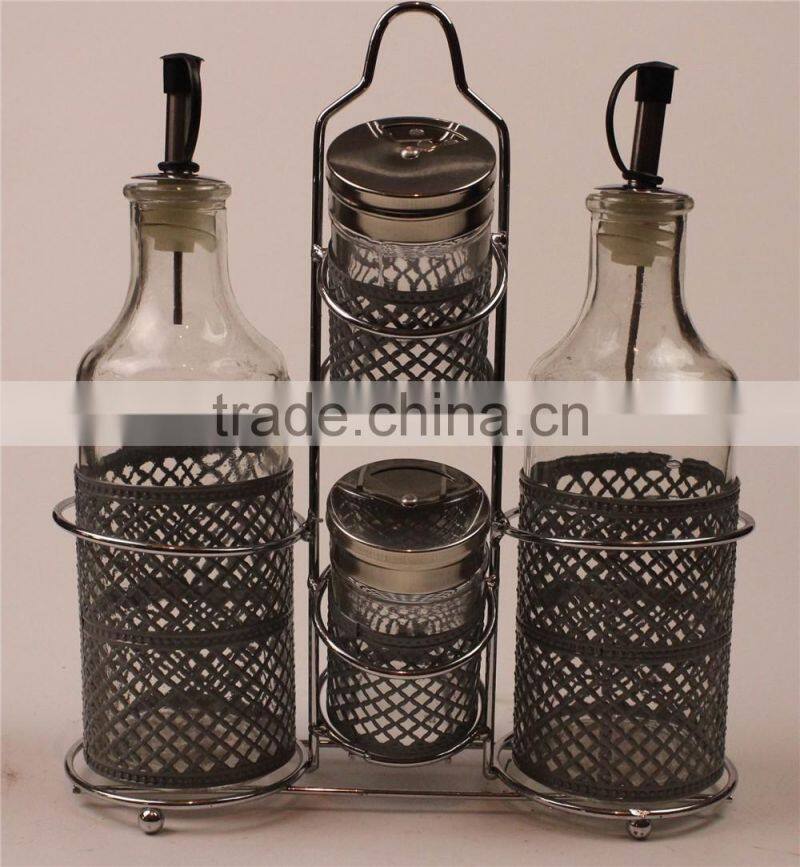 Glass Oil Vinegar Bottle Spice Jar Set Cruet Set With Metal Coat Shelf